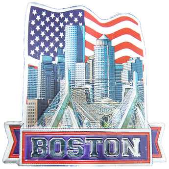 Boston Massachusetts is truly one of the greatest cities in the United States of America. This souvenir magnet shows off the elegant city skyline with the patriotic American flag in the background.
