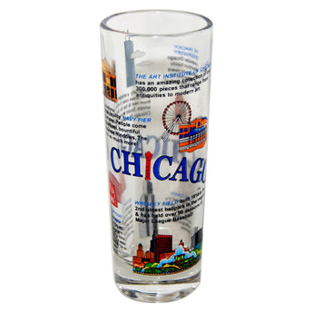 This souvenir shooter is special because not only is it a shooter but on the product is the history of many famous monuments and sights throughout Chicago. To make everyone feel like a true Chicago Native.Ê