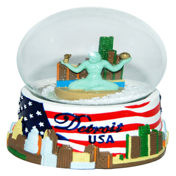 This Detroit USA novelty snow globe is the perfect gift for anyone from Detroit. It shows off the beautiful and patriotic American flag on the outside as well as the city skyline. The Iconic Spirit of Detroit on the inside ties this souvenir together making it a great snow globe.